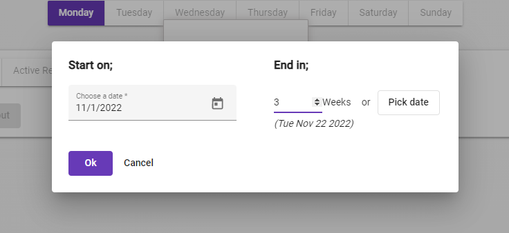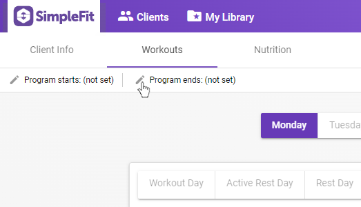 Please note that changing dates during the program will remove all recorded workout reports for that client.
